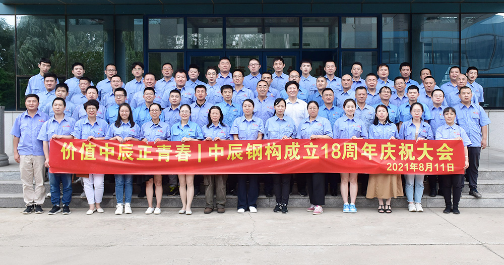 十八載風雨兼程,九萬里風鵬正舉。2021年8月11日下午15:00,中辰鋼構(gòu)成立18周年紀念大會在一樓職工書屋成功舉辦,公司中高層管理人員、助理、黨員、班組長及新員工共60人參加此次大會。