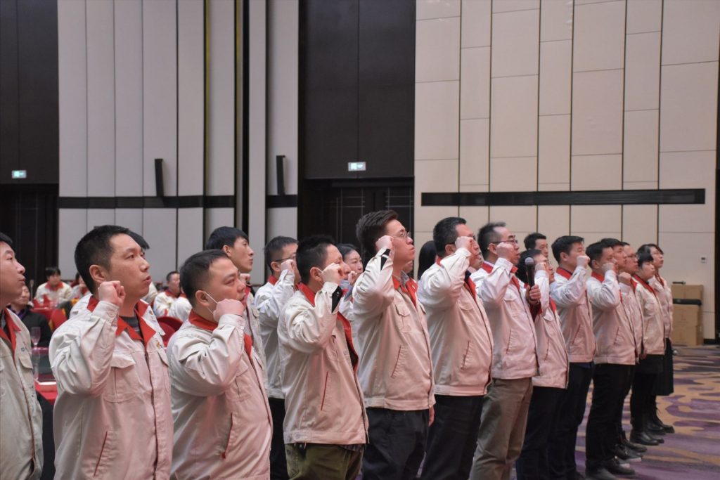 會議在一場莊嚴的宣誓下正式開始,所有中高層管理人員進行就職宣誓,決心要“以身作則、以上率下、言傳身教、躬身入局、修身律己、嚴格要求,不斷提高政治能力、調查研究、科學決策、改革攻堅、應急處突、群眾工作、抓落實這七項能力,按照年初制定的工作目標,保持謙虛謹慎、不驕不躁、艱苦奮斗的工作作風,絕不辜負公司的信任和員工的期望?!?/p>