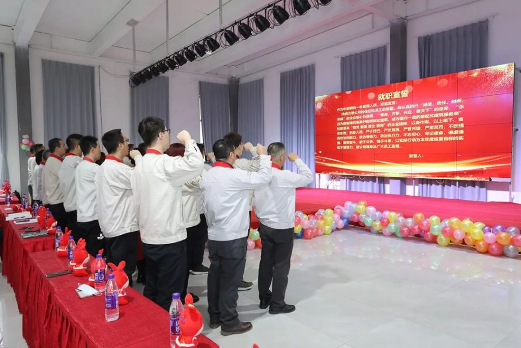 在宋董的帶領下,30余名中高層管理人員舉起右手,莊嚴宣誓:“……竭盡全力投入每一天的工作,以身作則,以上率下,言傳身教、躬身入局、嚴于律己、嚴負其責、嚴管所轄、嚴肅獎罰……”。字字鏗鏘、句句入心,充分彰顯中辰人的實干與擔當。