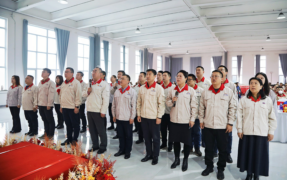 大會在雄壯的國歌聲中拉開序幕,參會人員全體起立,高唱國歌,胸中激蕩起投身實業(yè)、接續(xù)奮斗、振興有我、強國建設(shè)的壯志豪情。