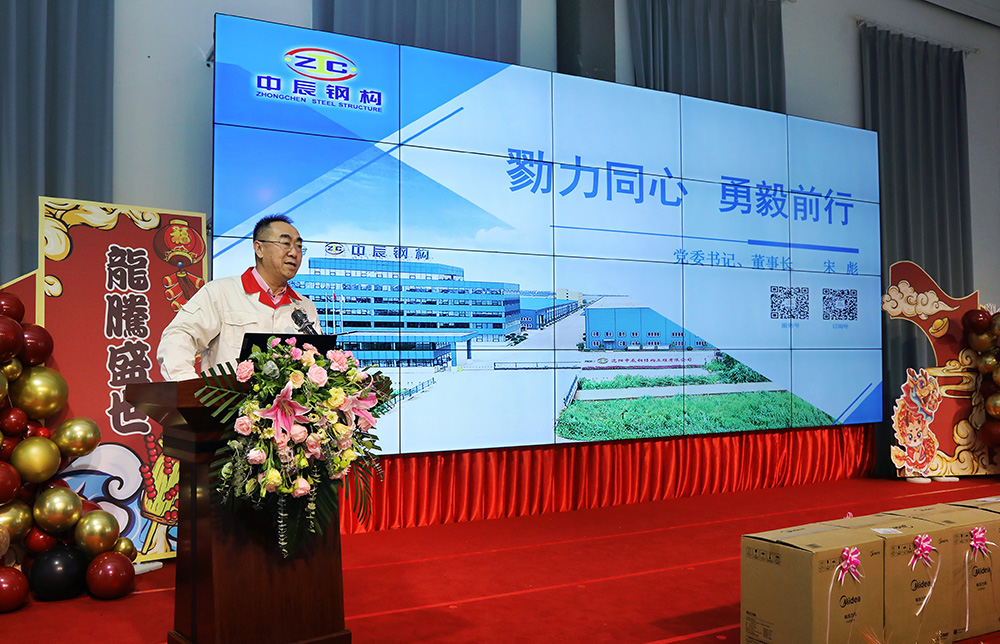 山河共赴,新歲同歡,一元啟勢,萬象啟新。在2024甲辰龍年開年之際,1月2日,中辰鋼構(gòu)在鐵西科創(chuàng)園舉辦“勠力同心奮進新征程 勇毅前行創(chuàng)優(yōu)新十年”主題年會。300余名中辰及科創(chuàng)職工齊聚一堂,共襄盛典,回顧一年來的奮斗歷程,同時以更加昂揚的精神面貌開啟高質(zhì)量發(fā)展新十年!